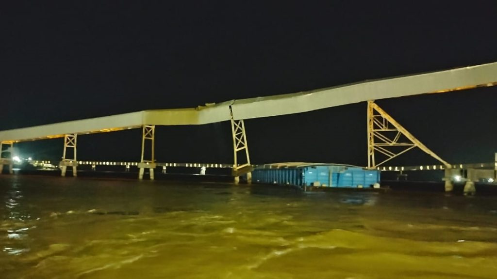 Por volta das 19h, uma barcaça carregada de grãos se soltou do cabo de amarração e acabou colidindo contra um dos pilares da galeria da empresa Artemyn, chamando a atenção de trabalhadores e moradores da região.