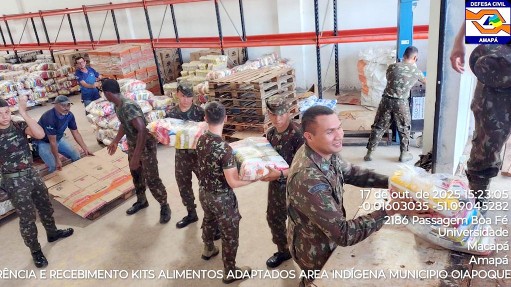 EXÉRCITO – Militares da 22ª Brigada de Infantaria de Selva, comandada pelo General de Brigada Roberval, apoiaram a Defesa Civil do Amapá no embarque de aproximadamente 2.500 cestas básicas. Os itens foram destinados a comunidades indígenas, agricultores e pescadores do município de Oiapoque, afetados pela praga “vassoura-de-bruxa”, que comprometeu a produção local de mandioca e ameaça a segurança alimentar da região.