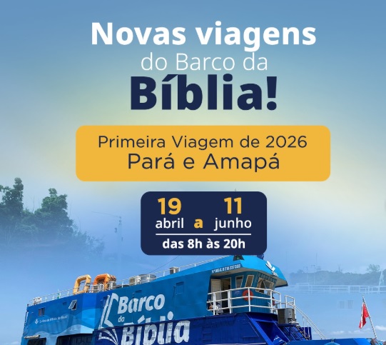 A Sociedade Bíblica do Brasil (SBB) inicia, no sábado, 19 de abril, a primeira viagem de 2026 do projeto Barco da Bíblia, que percorre rios da região amazônica com ações sociais, distribuição de Escrituras e incentivo à leitura bíblica.